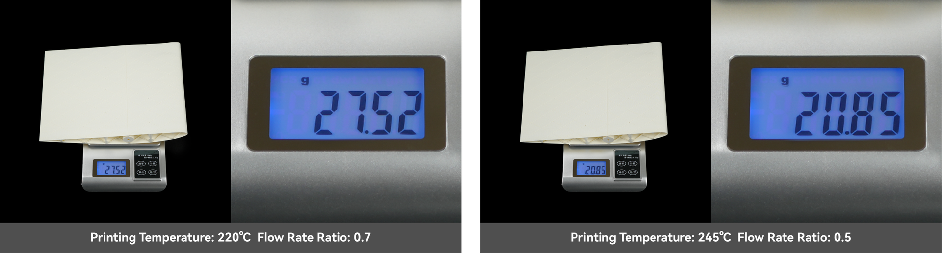 Bambu PLA Aero opnår lav densitet og let vægt ved at skumme under høje temperaturer under printningen, hvilket skaber små hulrum inde i emnet. Det er det perfekte valg til letvægts- og energibesparende print, såsom ubemandede luftfartøjer (UAV’er), aerodynamiske modeller og svævefly.