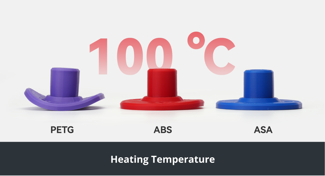 Sammenlignet med almindelig PETG eller ABS bevarer Bambu ASA sin form selv ved temperaturer op til 100 °C.