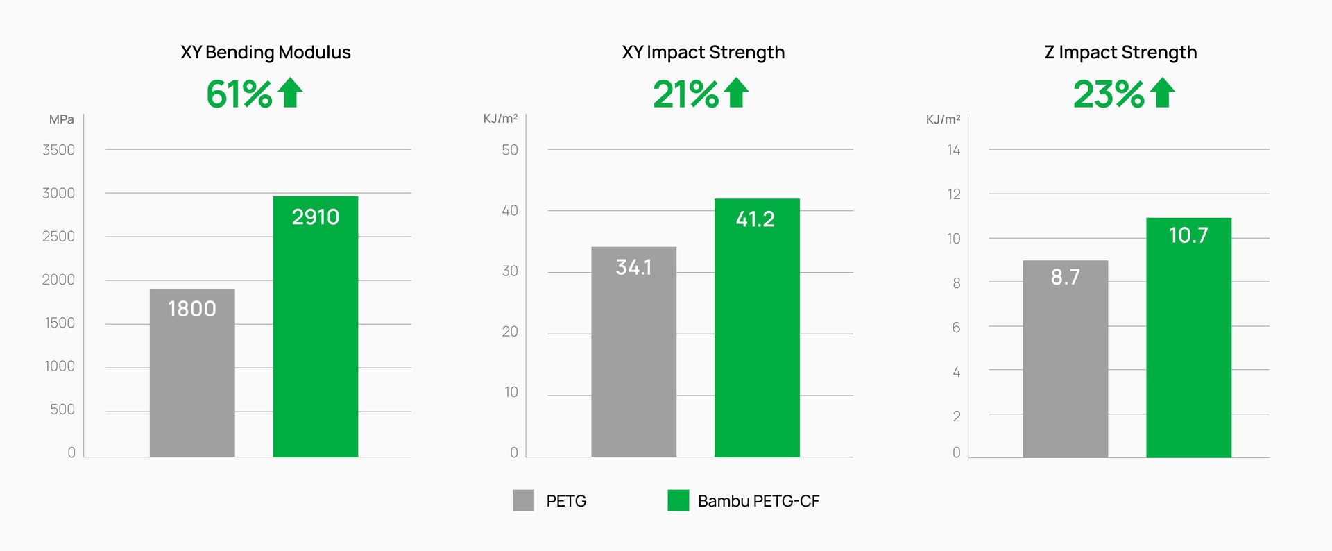 Med tilsætningen af kulfiber overvinder Bambu PETG-CF den lave stivhed ved almindeligt PETG og leverer øget styrke og sejhed, hvilket gør det til et solidt valg til strukturelle og belastningstunge dele.