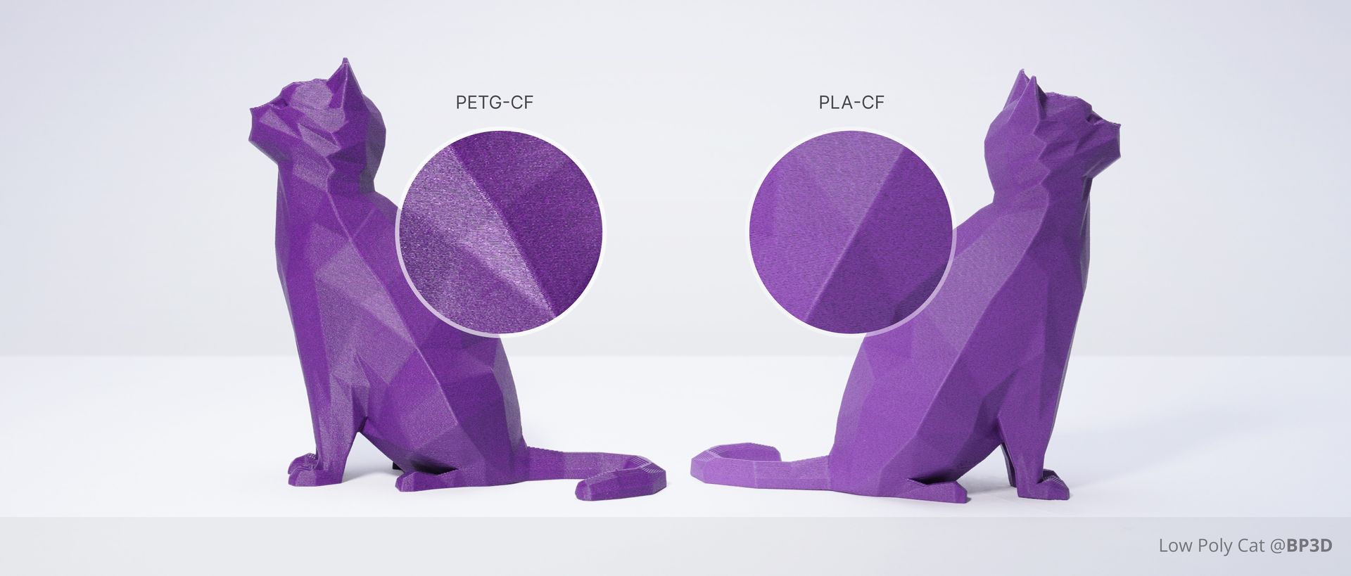 Bambu PETG-CF har en kulfibertekstur, der skjuler laglinjer, mens overfladen er mere glansfuld end PLA-CF – hvilket gør den lige så æstetisk tiltalende, som den er funktionel.