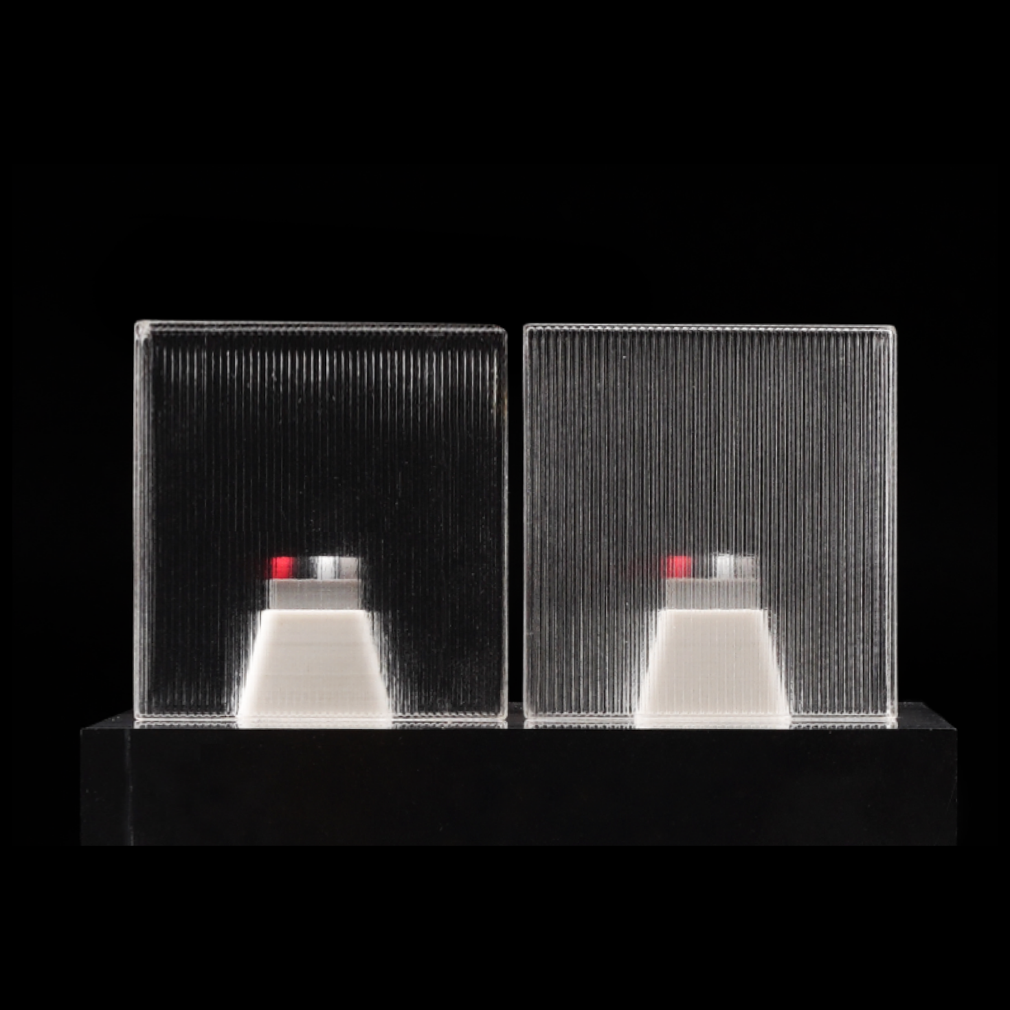 *Bemærk venligst, at gennemsigtigheden af printene kan variere afhængigt af faktorer som størrelse og struktur samt printparametre (herunder hastighed, dysetemperatur og infill-tæthed).