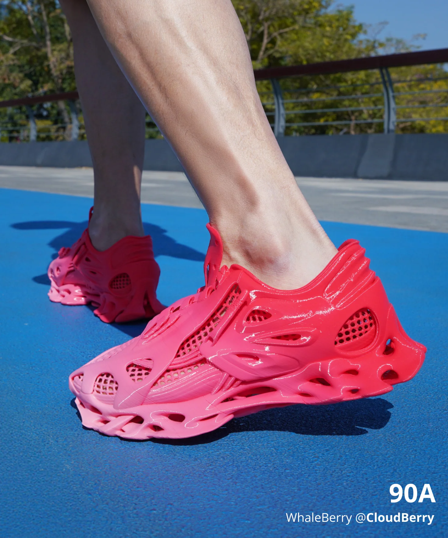 Bambu TPU 90A – Med en højere hårdhed giver det øget strukturel styrke, hvilket gør det ideelt til skosåler, RC-dæk og funktionelle komponenter, der kræver både fleksibilitet og styrke.