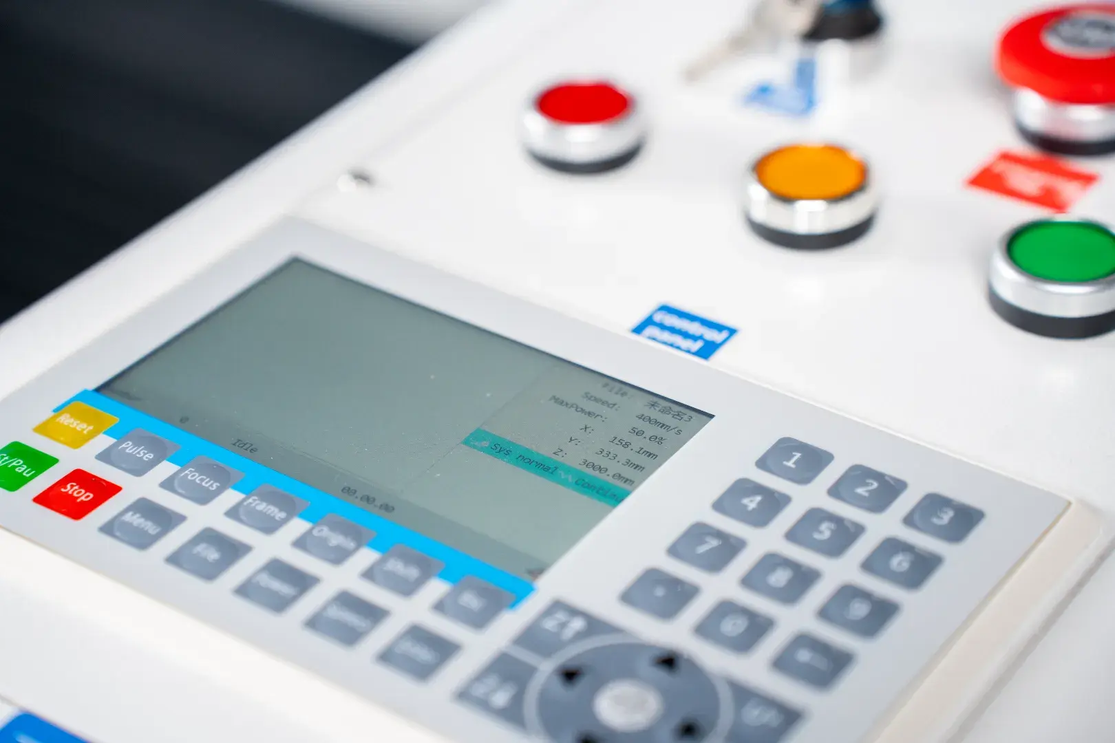 LaserPro 130x90 styres med et intuitivt Ruida kontrolpanel med en stor og tydelig skærm, der giver et godt overblik over dine filer.