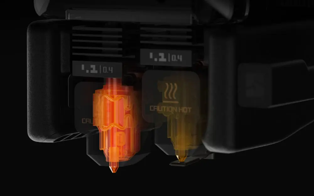 Oplev mekanikkens kunst og det fulde potentiale af multimateriale-print med H2D 3D printers banebrydende system til skift mellem to dyser. Let, præcist og pålideligt, muliggør det bekymringsfri materialeændringer og åbner op for en verden af kreative muligheder.