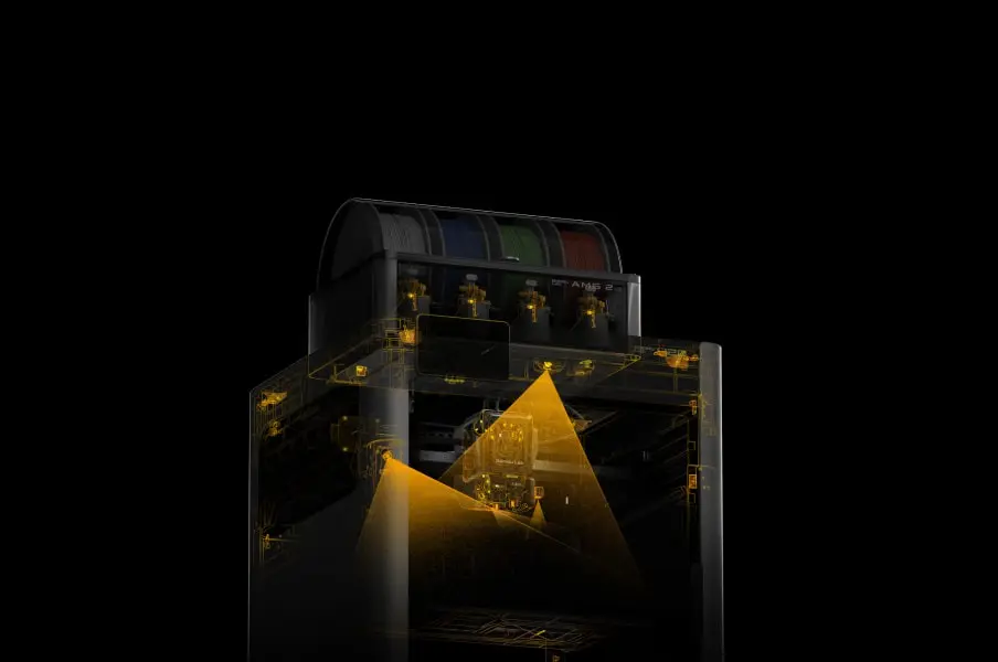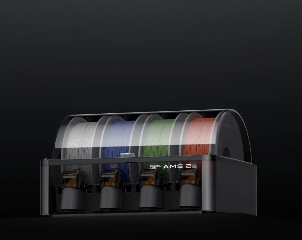 De helt nye 2. generations AMS-systemer, herunder AMS 2 Pro og AMS HT, er udstyret med børsteløse servomotorer, der markant forbedrer filamentfremføringen og øger hastigheden på flerfarve- og multimaterialeprint. Endnu bedre – 2. generations AMS introducerer en filamenttørringsfunktion med aktiv luftudluftning i et fuldt forseglet system, hvilket øger tørringseffektiviteten betydeligt og sikrer optimale filamentforhold over længere tid.