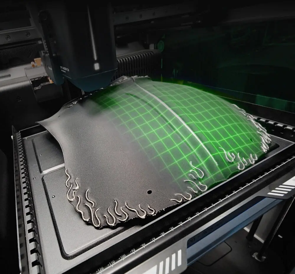 Avanceret optisk højde måling skaber et detaljeret 3D-mesh uden fysisk kontakt, hvilket muliggør præcist laserarbejde på buede overflader.