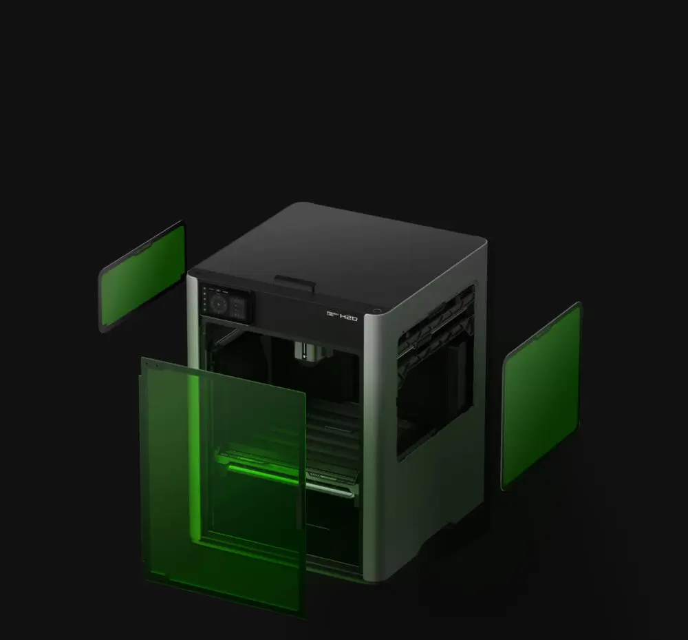 Bambu Lab H2D Combo er udstyret med 65°C aktiv kammeropvarmning og en højtemperatur-hotend, der når op til 350°C, hvilket sikrer præcis temperaturstyring i et lukket system. Dette avancerede system eliminerer effektivt vridning og deformation i højtydende materialer, hvilket garanterer overlegen lagbinding og maksimerer materialernes fulde potentiale.